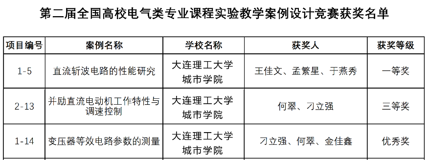 金秋十月,捷报频传!大连理工大学城市学院电子与自动化学院再传喜讯——在2025年10月18日于上海交通大学举办的第二届全国高校电气类专业课程实验教学案例设计竞赛中,我院教师表现卓越,荣获国家级一等奖1项、三等奖1项、优秀奖1项,再次展现了我院在实验教学改革与创新能力培养方面的雄厚实力!