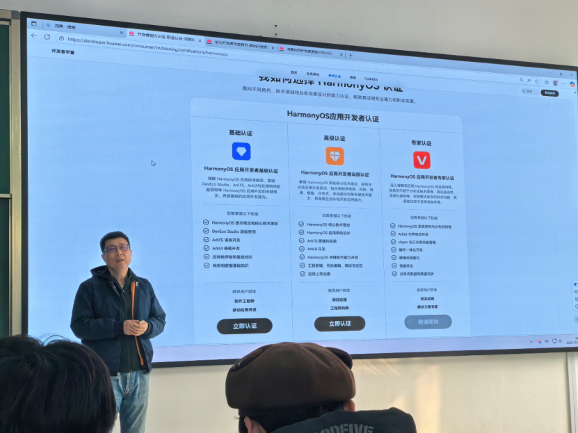 孙惠总监从鸿蒙产业全局出发,解析大学生就业市场变化,重点解读鸿蒙生态对开发、运维、产品等岗位的能力需求,为学员厘清职业发展方向。