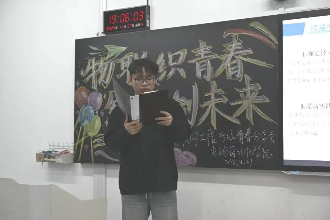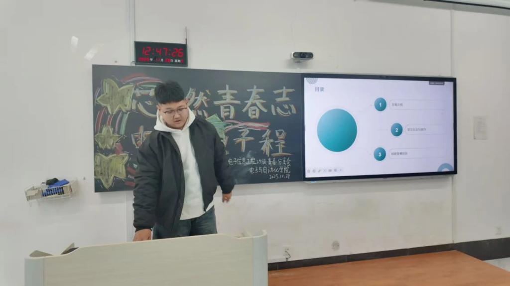 为深入推进学院学风建设走深走实,发挥优秀学子的榜样辐射作用,2025年11月27,28日,电子与自动化学院特邀各年级学业先锋、竞赛达人为榜样代表,于思贤楼为2025级新生带来一场学风分享会。