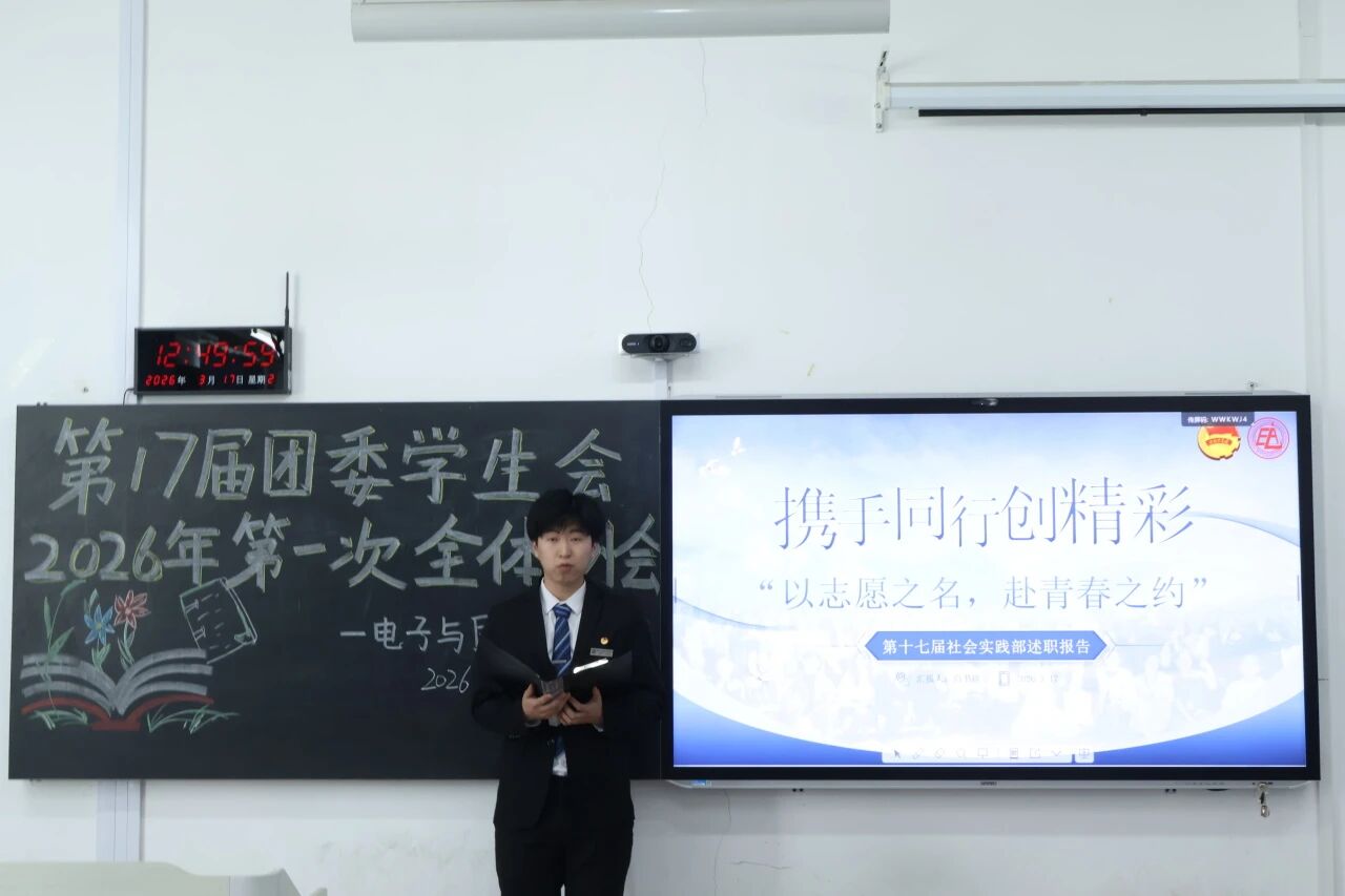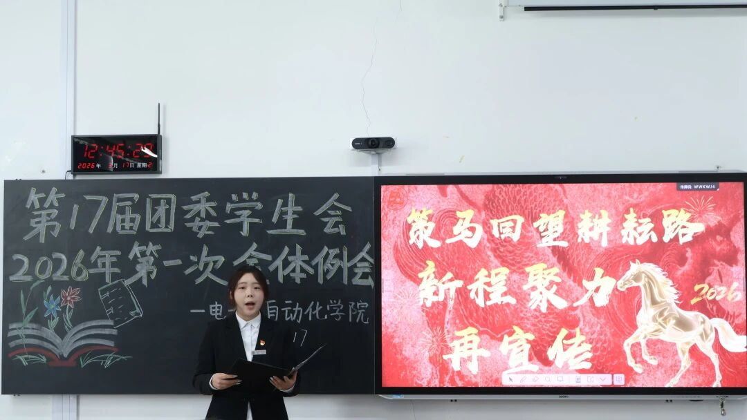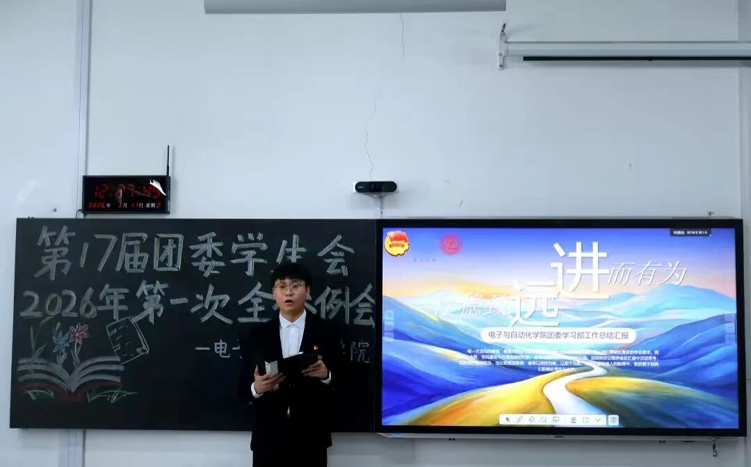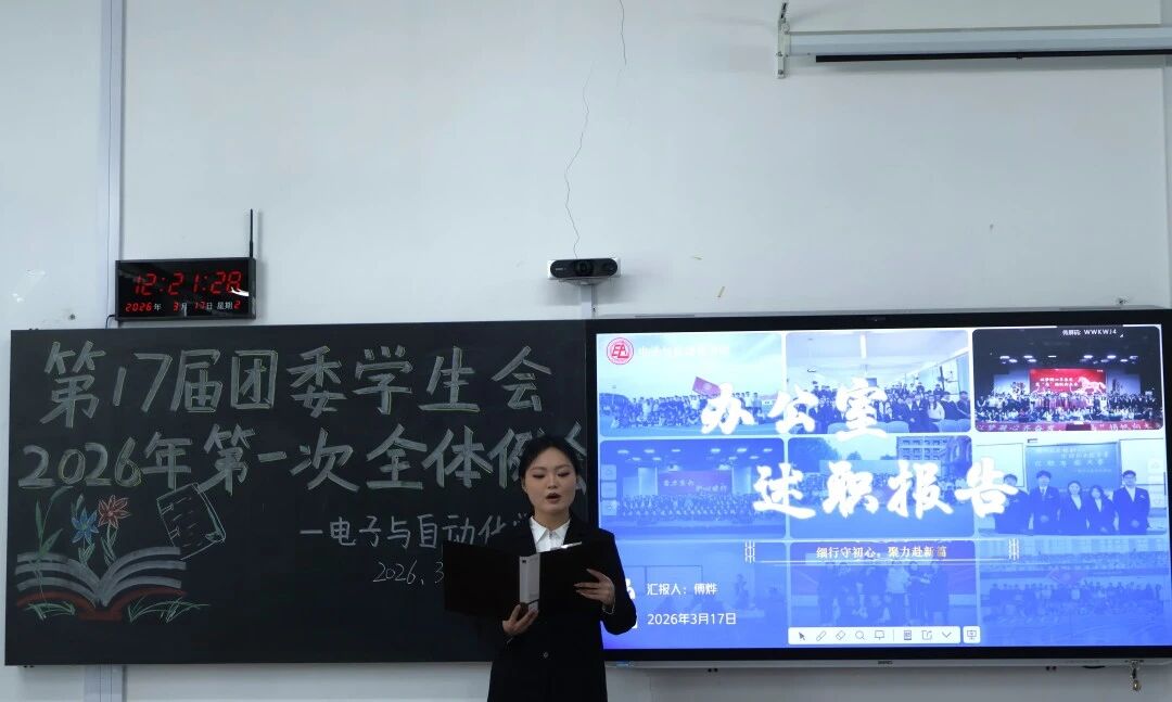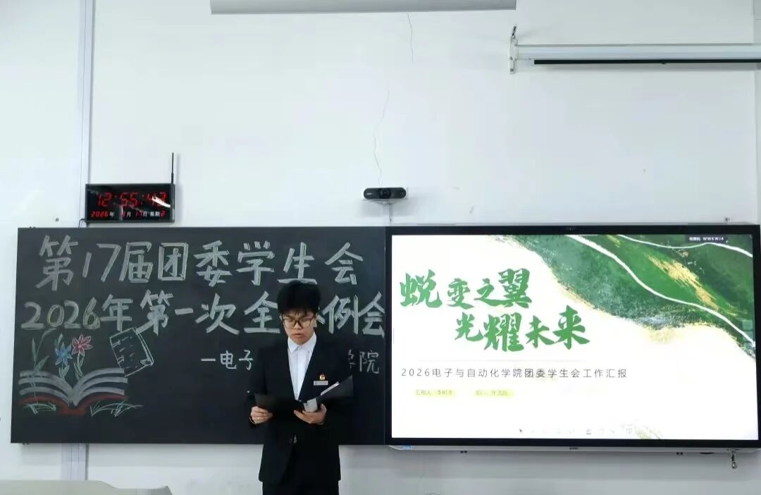 为进一步凝聚电子与自动化学院团委学生会工作合力,保障各项学生工作高效衔接、有序开展,电子与自动化学院于2026年3月17日中午12:10在思贤楼105召开第17届团委学生会2026年第一次全体例会。本次会议由团委副书记(学生)马靖雅主持。全体干部干事参会,共同梳理工作重点、明晰行动方向。