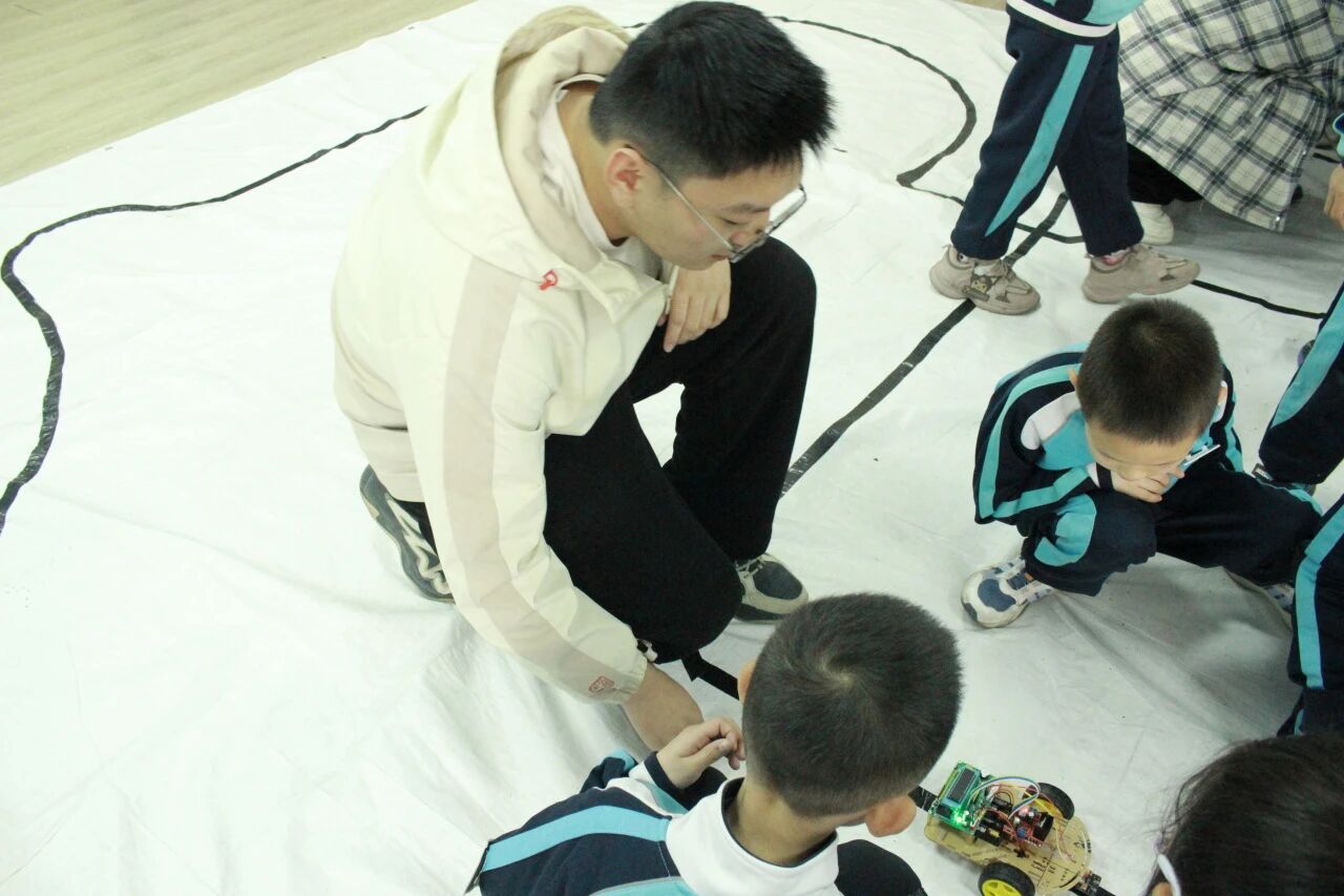 活动现场,我院科技创新团队为松林小学师生带来循迹小车与智能机器人展示。科创小讲师成员现场演示小车循迹行进、机器人灵活互动等功能,用简洁生动的语言讲解工作原理,并与小学生近距离交流互动,在趣味体验中普及科学知识,充分展现了青年学子的专业风采与科普活力。