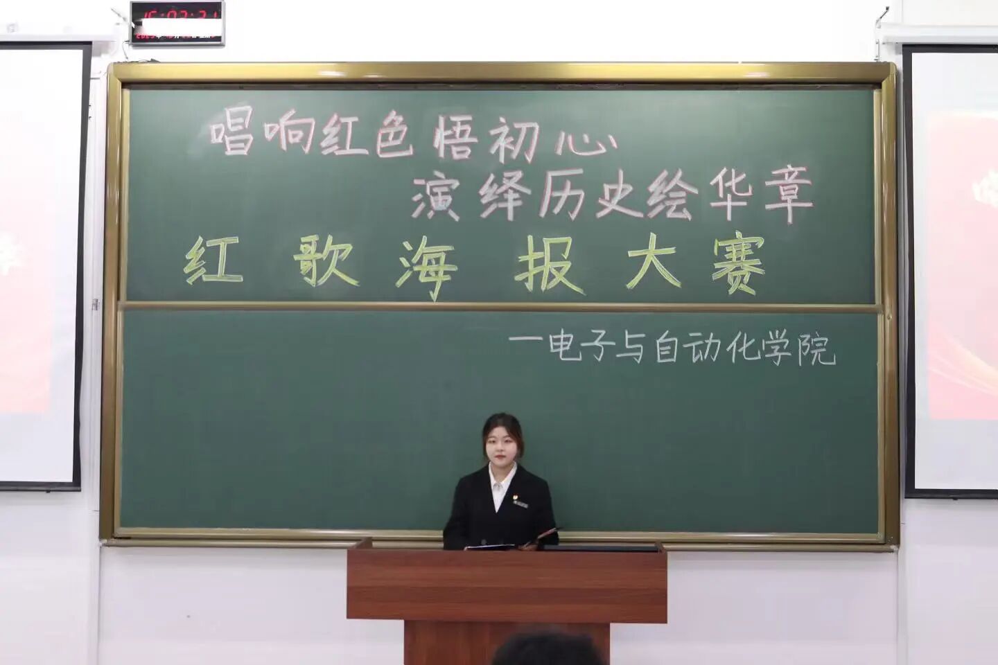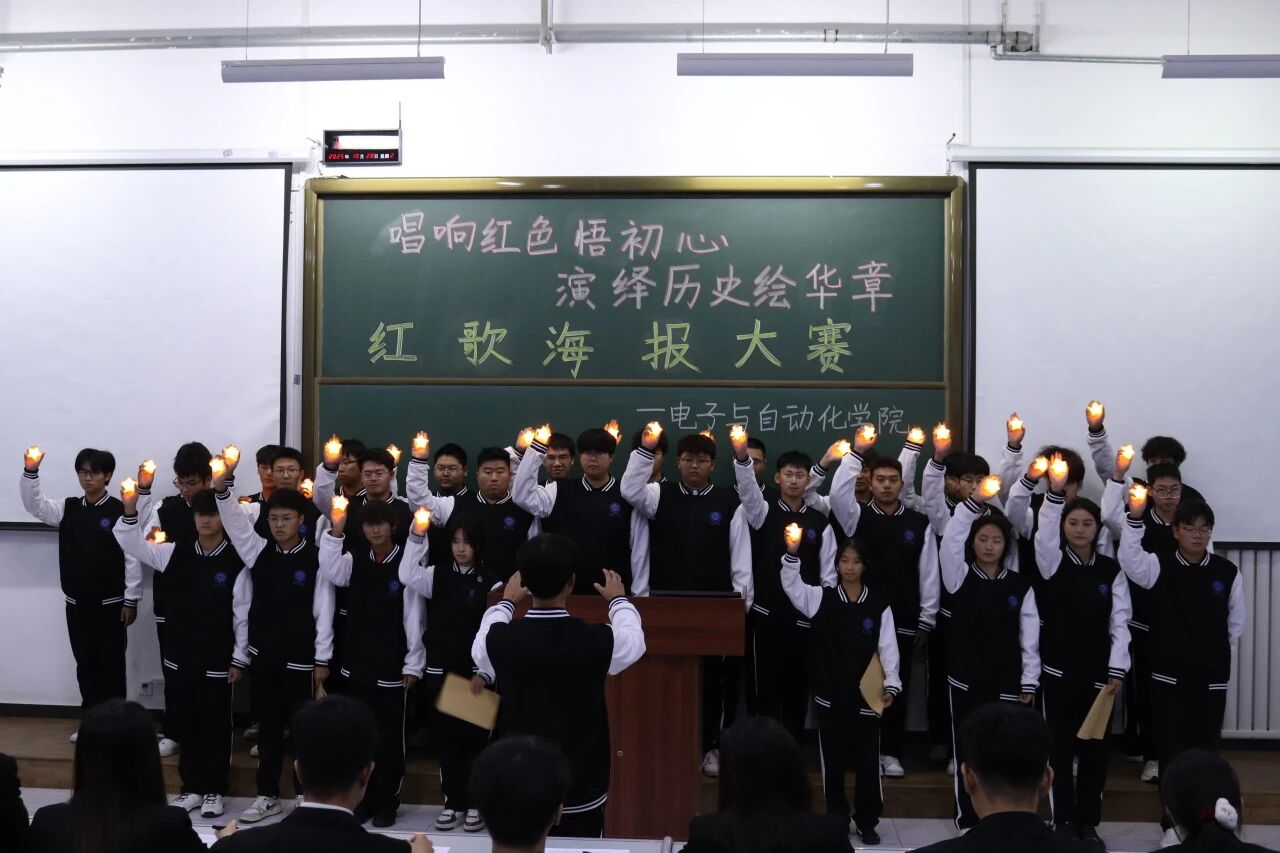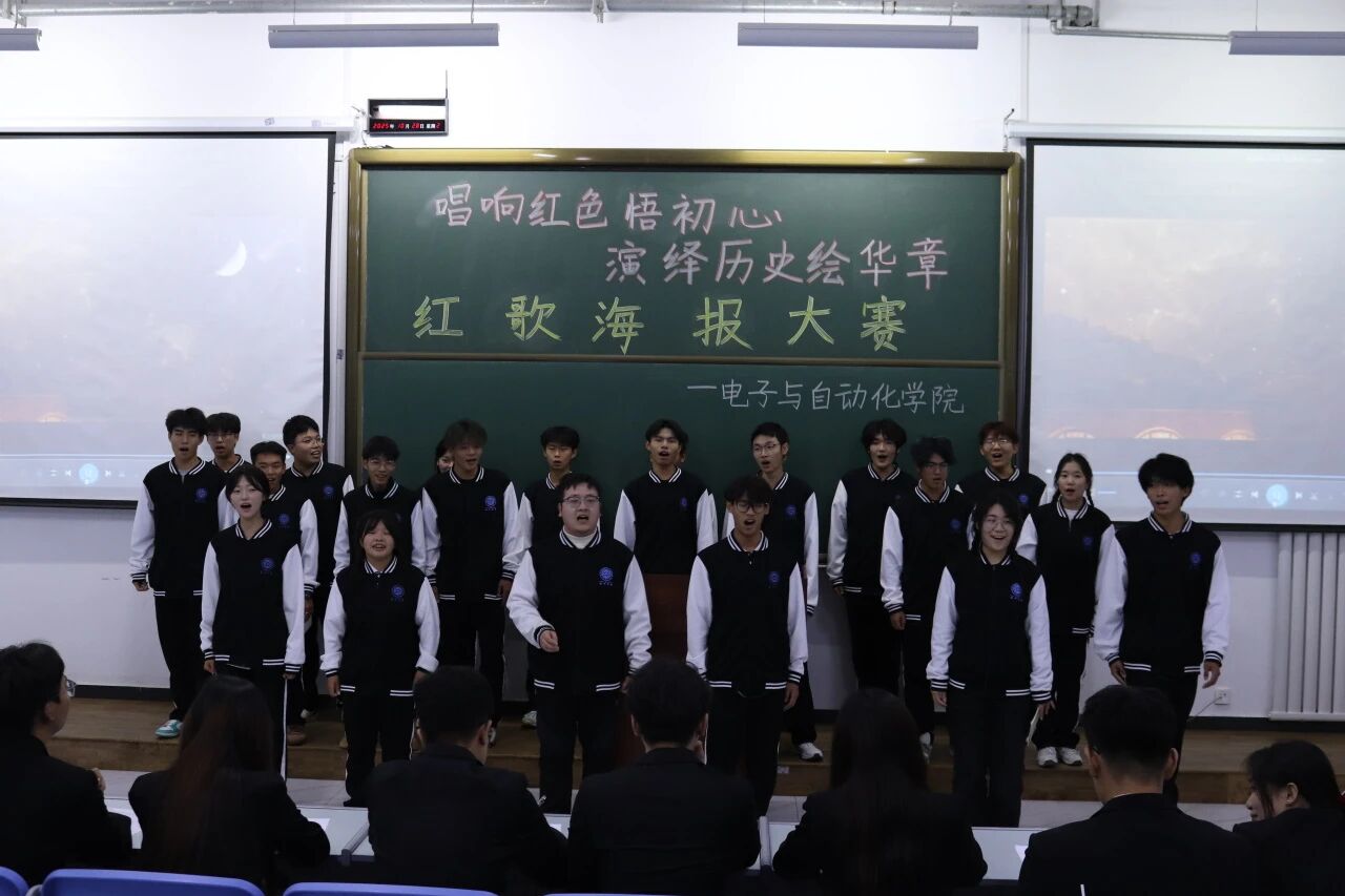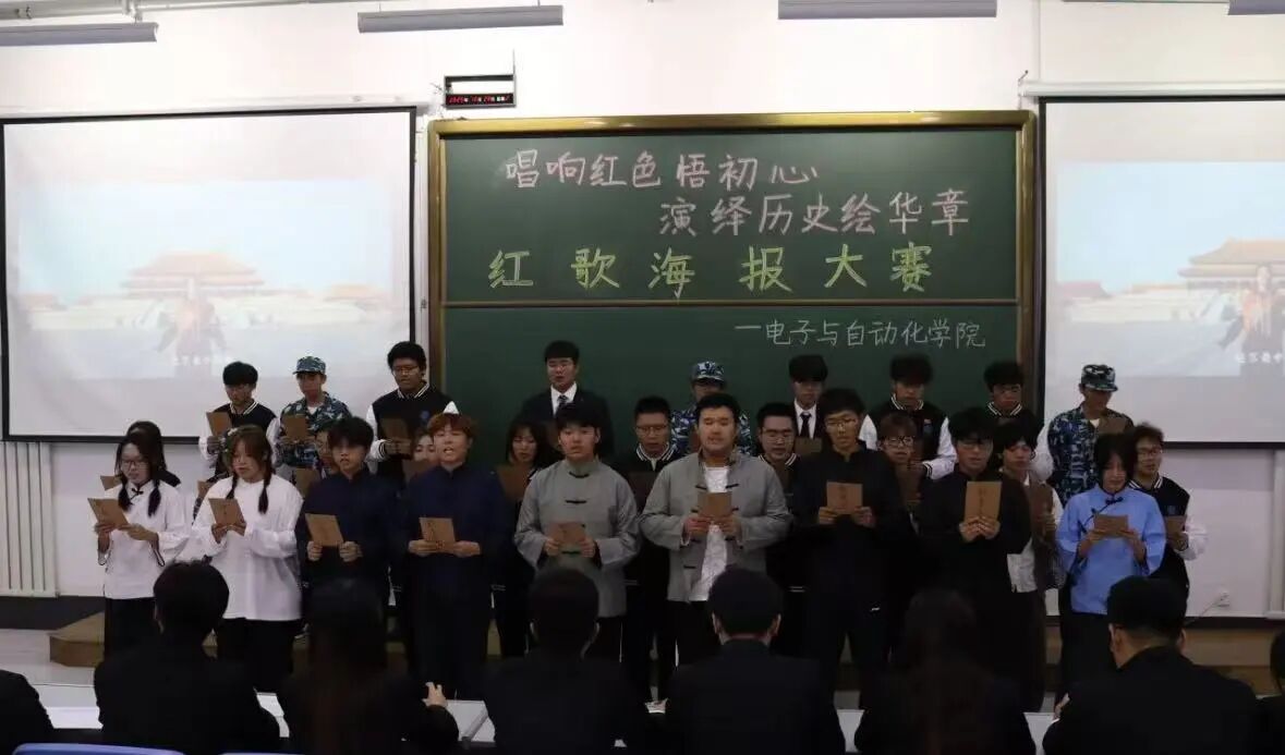 为唱响红色歌曲,传承红色文化,纪念抗日战争暨反法西斯战争胜利80周年,丰富同学们的课余生活,活跃校园文化氛围,电子与自动化学院于2025年10月28日在晨曦楼304教室举办了“歌唱红色悟初心,演绎历史绘华章”红歌海报创作大赛初赛。