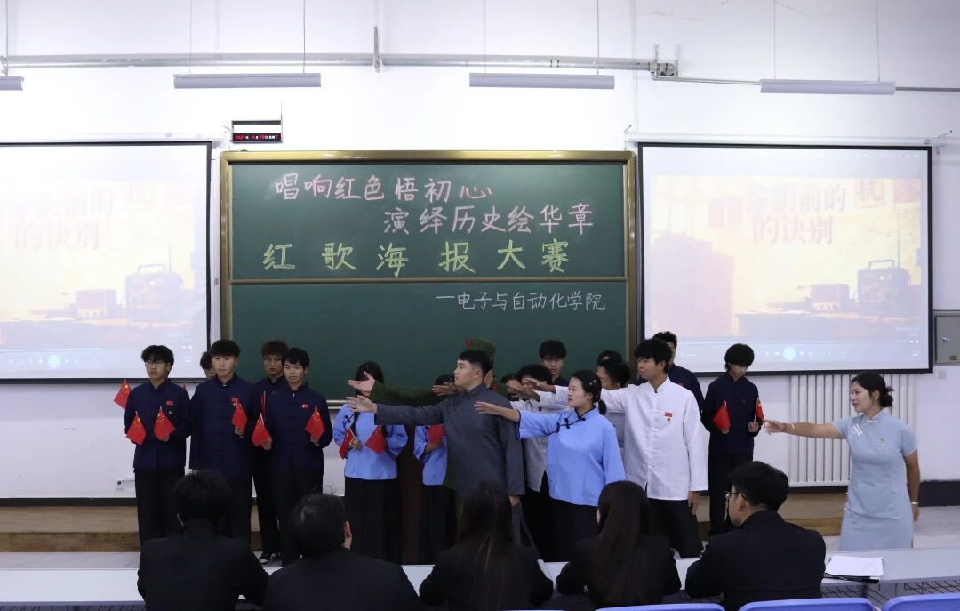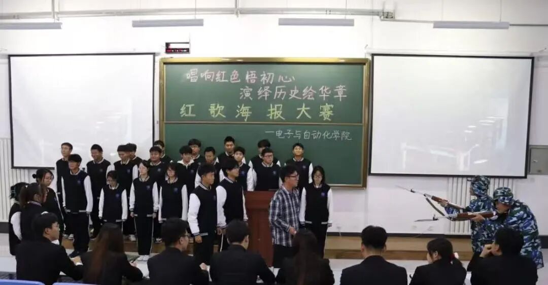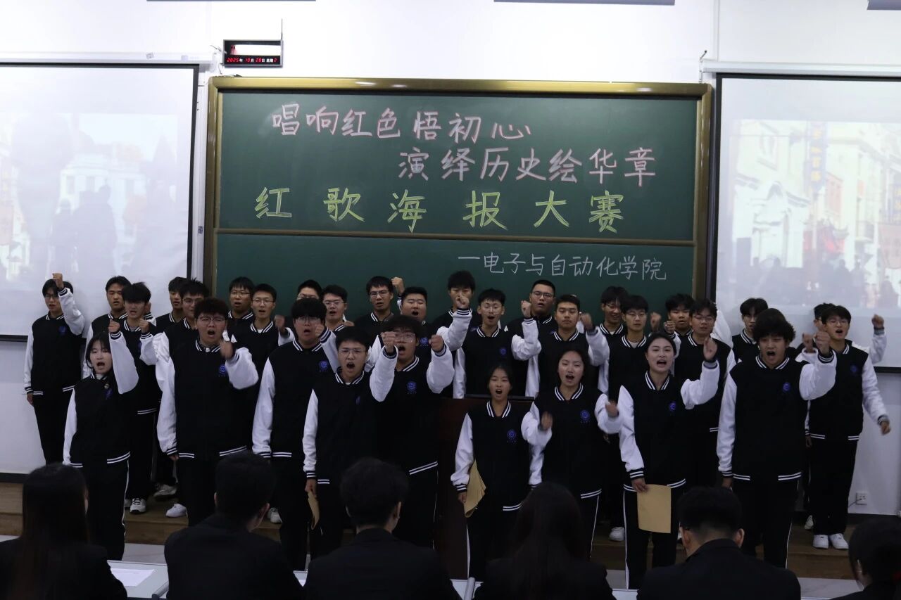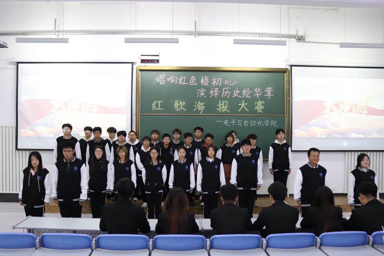 为唱响红色歌曲,传承红色文化,纪念抗日战争暨反法西斯战争胜利80周年,丰富同学们的课余生活,活跃校园文化氛围,电子与自动化学院于2025年10月28日在晨曦楼304教室举办了“歌唱红色悟初心,演绎历史绘华章”红歌海报创作大赛初赛。