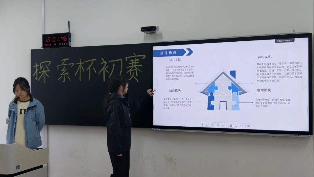创新是探索未知的灯塔,灵感是突破边界的火种。为培养学生科技创新思维与实践能力,2025年11月4日下午2:00,电子与自动化学院在思贤楼302教室举办了第十三届“探索杯”电子产品开发设计大赛初赛。