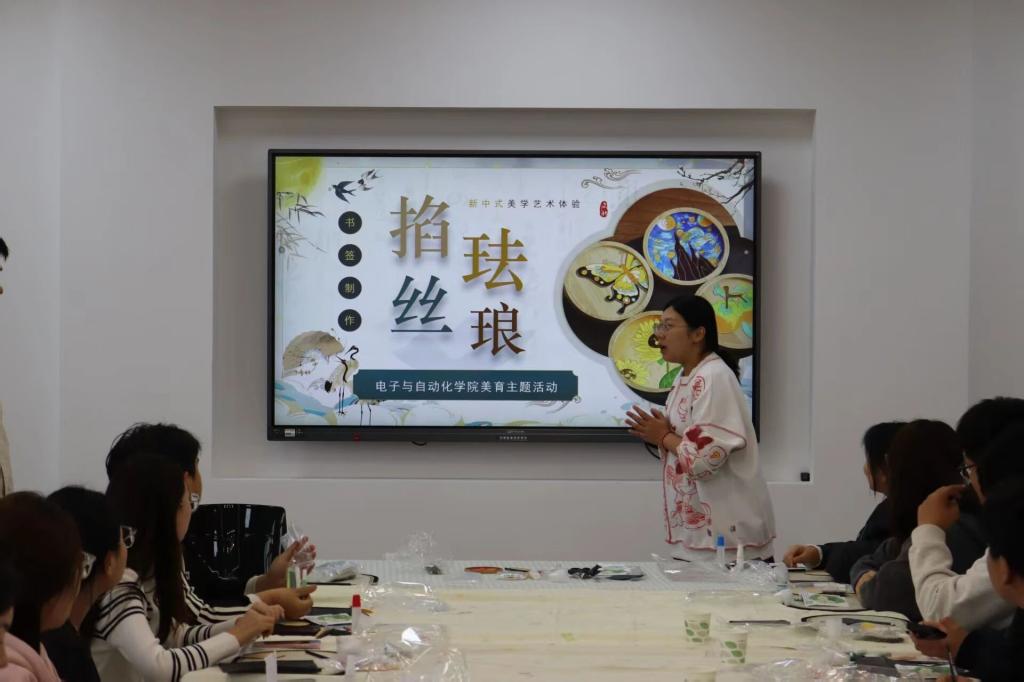 为了丰富课余生活,解锁非遗美学意蕴,深耕非遗底蕴,11月4日12时,电子与自动化学院在思贤楼401举办“承珐琅千年韵,赴秋日浪漫行”为主题的掐丝珐琅活动。本次活动由辅导老师宋佳主讲。
