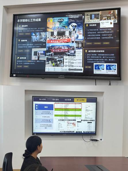 述职会上,15名华为ICT学院讲师依次作个人年度工作述职,全面总结了过去一年在实训室建设、招生工作、宣传工作、教学实施、竞赛指导、课程建设、科研创新、学生辅导、社会服务等方面的工作成果与心得体会。每位教师述职时间控制在5-8分钟,内容凝练务实,现场氛围庄重而热烈。