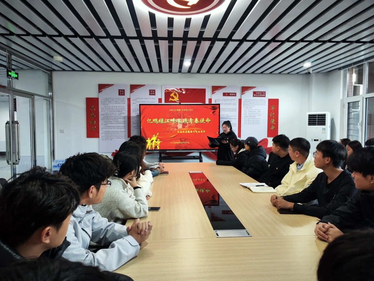 为弘扬伟大的抗美援朝精神,让学生党员能够铭记历史,电子与自动化学院学生党支部于10月23日在一站式社区开展“英雄精神薪火传,践行青春使命”主题党日活动。本次活动由学生党员曲婉荧主持,电子与自动化学院学生党支部书记赵志阳,学生党员、入党积极分子参与本次活动。